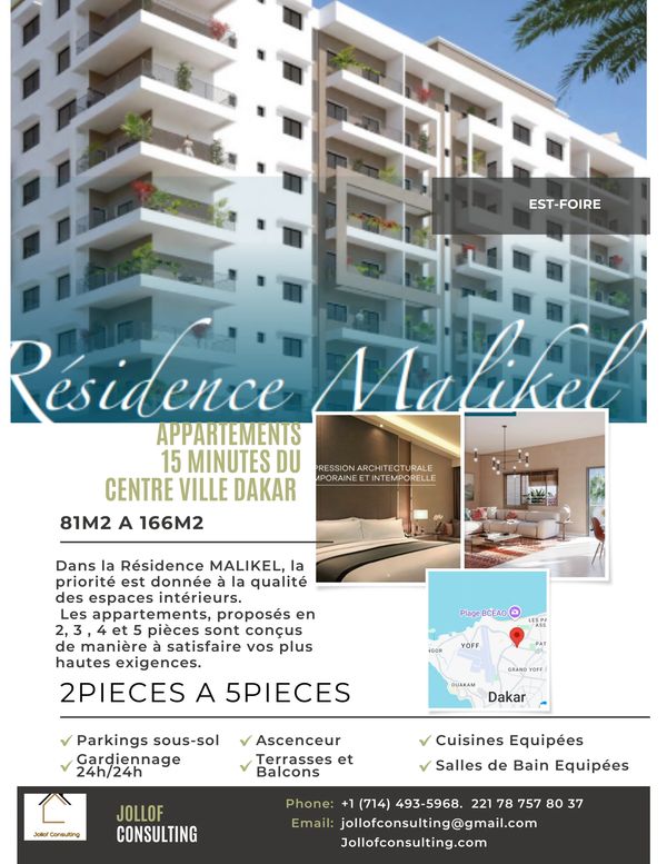 RESIDENCE MALIKEL sur Est- Foire offre un choix d' appartements de F2 au F5 sur 81m2 à 166m